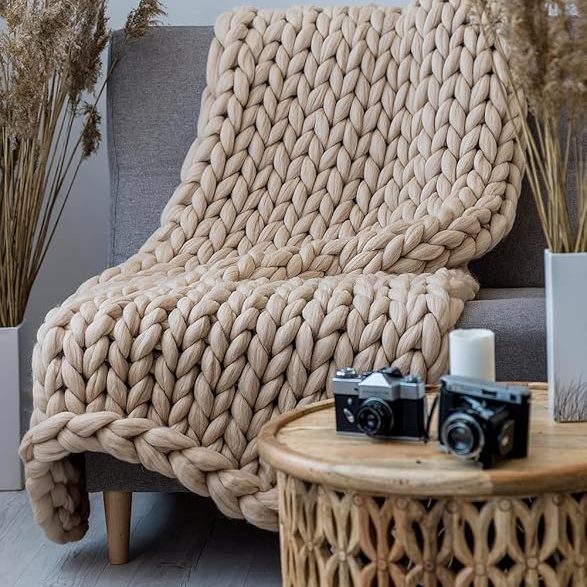 Premium Merino Wool Material: Crafted from soft, high-quality Merino wool, this chunky knit blanket offers unparalleled warmth and comfort for chilly days.